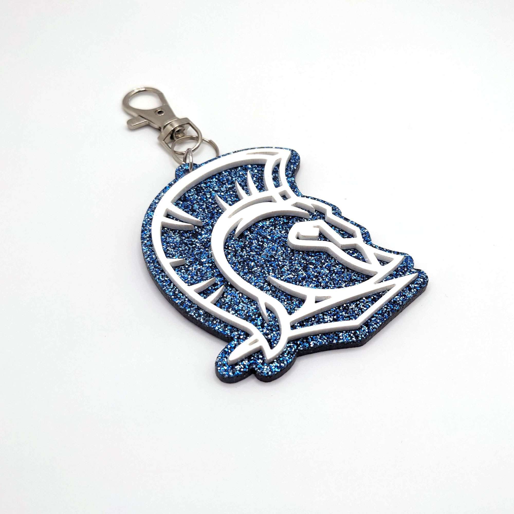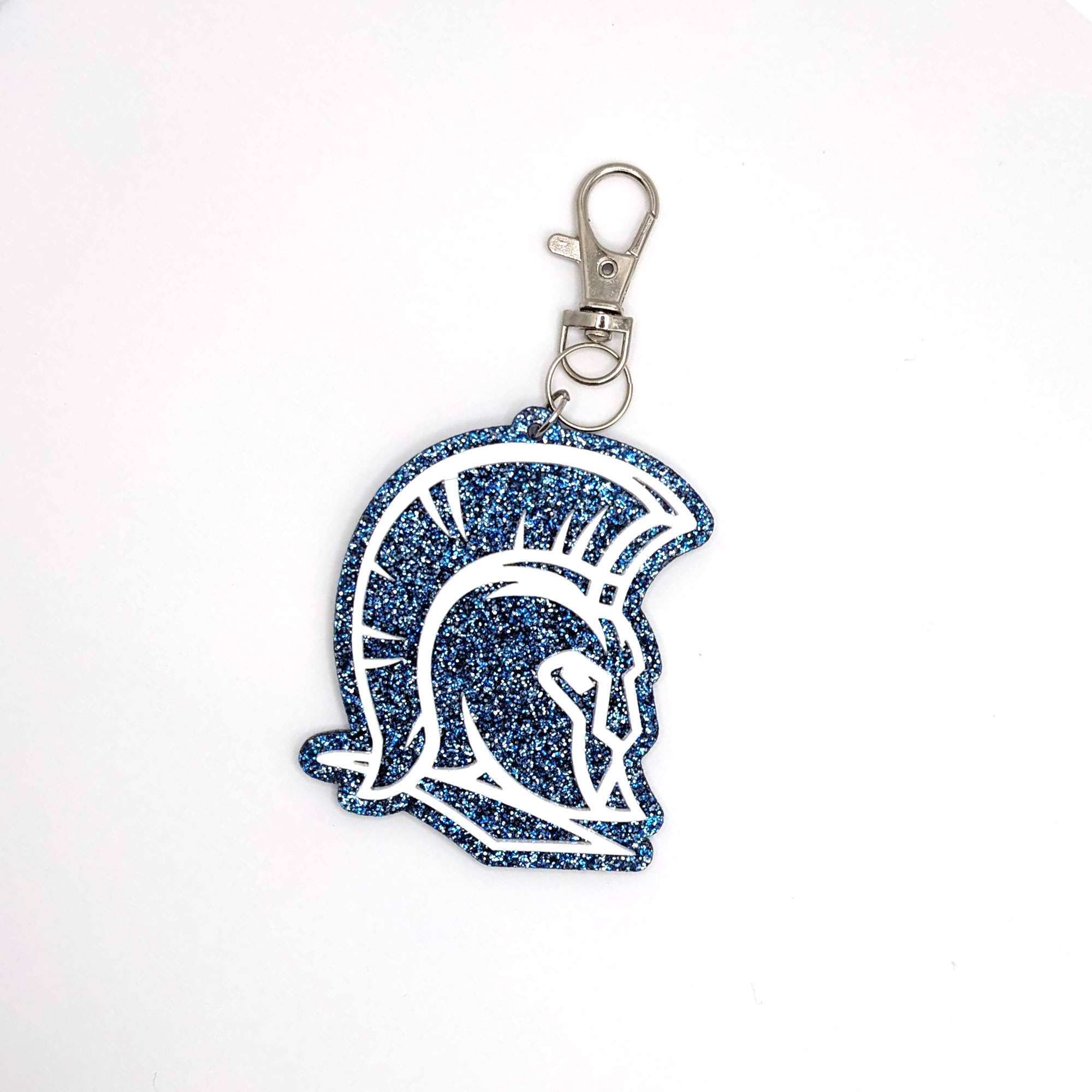 Show your Spartan pride and find your bag a little bit easier on the sidelines with this glitter acrylic Spartan bag tag! Please note that each tag is individually handmade and may vary ever so slightly from the item pictured. Small imperfections may occur.